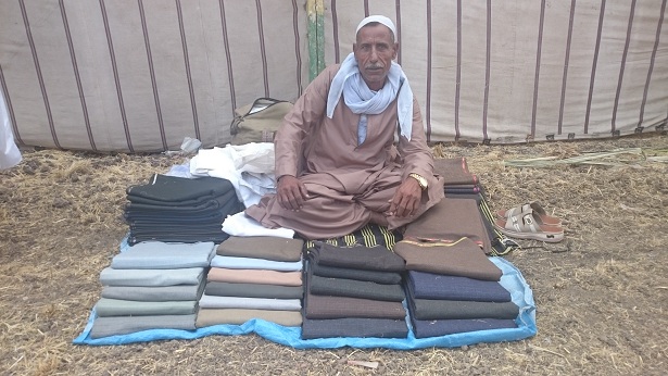 "عم رجب".. جاء من أقصى الصعيد قاصدًا مدينة طنطا بمحافظة الغربية، بحثًا عن "لقمة العيش"، يجنيها من خلال بيع بعض قطع القماش الرجالي وسط خيام مريدي ومحبي العارف بالله أحمد البدوي، تزامنًا مع "مولد السيد البدوي"، الذي تحتفل به مدينة طنطا على مدار هذا الأسبوع.