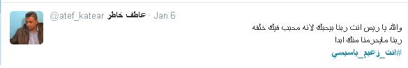 وأردف "عاطف خاطر": "والله يا ريس انت ربنا بيحبك لانه محبب فيك خلقه ربنا مايحرمنا منك ابدا #انت_زعيم_ياسيسي ".